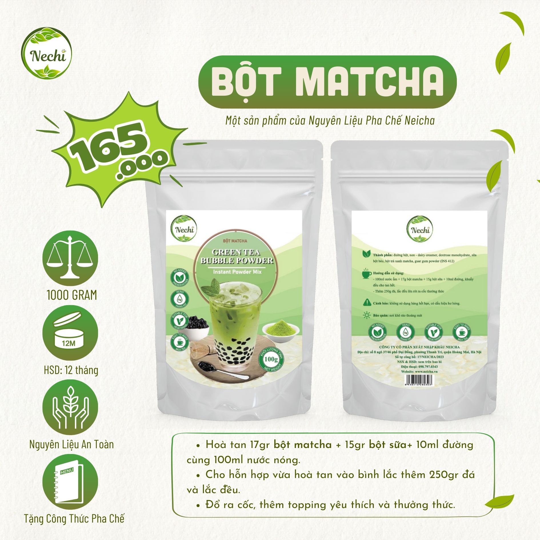 Neicha ra mắt dòng sản phẩm dành riêng cho kênh quán, bột matcha Nechi chắc chắn là sản phẩm các chủ cửa hàng kinh doanh đồ uống không thể bỏ qua. Neicha hoạt động trên thị trường cung cấp nguyên liệu pha chế gần 10 năm, hàng ngàn sản phẩm chất lượng đã được gửi đi khắp cả nước và bột matcha cũng không ngoại lệ.