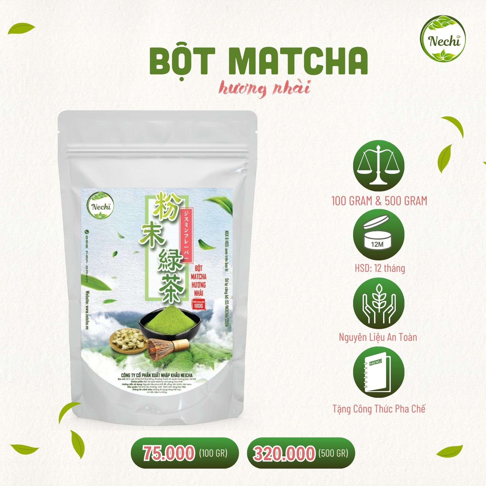 Bột matcha hương nhài Nechi là sự kết hợp hoàn hảo giữa hương hoa nhài quyện cùng mùi vị matcha đặc trưng. Tuy chỉ mới ra mắt thời điểm gần đây, tuy nhiên dòng bột matcha hương nhài Nechi dành riêng cho kênh quán đã liên tục cháy hàng, đủ để thấy “độ uy tín” của sản phẩm nhà Neicha.