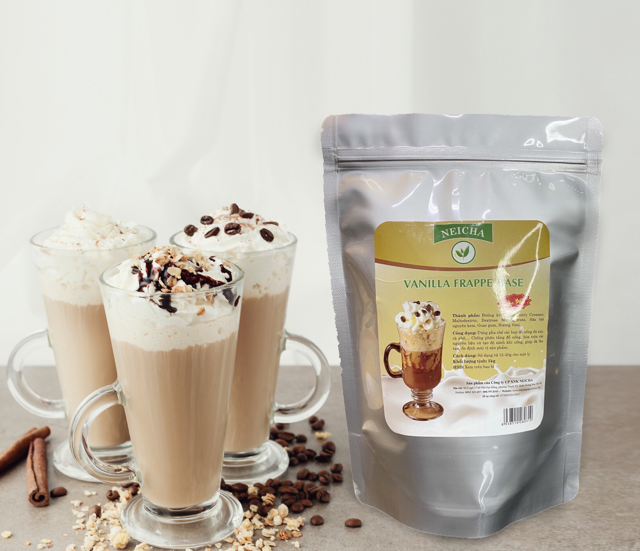 Ngoài ra, còn có bột mix Vanilla Frappe Base Neicha. Mùi vanilla sẽ quyện cùng với các mùi siro mạnh như hazenut, cookie, green mint,… để thoang thoảng hương vanilla giúp cho khách hàng không còn thấy mùi hắc của Siro (do siro có bổ sung hương liệu nên khi đưa lên mũi ngửi mùi bị mạnh quá, cảm giác sẽ bị hắc). Ngoài ra có thể sử dụng bột mix vanilla để nấu chè: chè đậu đen chẳng hạn,…