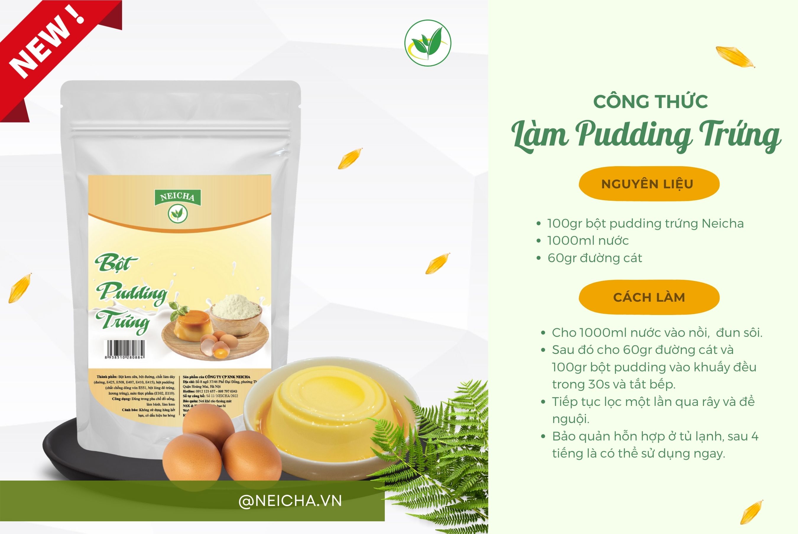 Pudding chính là một trong những loại topping được yêu thích nhất của những người yêu thích trà sữa. Với kết cấu mềm và đa dạng màu sắc như xanh lá của matcha, màu cam của xoài, màu nâu của chocolate,....thật khó để bỏ qua những miếng topping hấp dẫn này. Vậy bạn đã thử qua pudding trứng chưa? Không ngừng “làm mưa làm gió” trên thị trường pha chế, pudding trứng mềm mướt béo ngậy và đặc biệt không tanh uống cùng trà sữa thì là nhất. Cách làm pudding trứng nhanh, đơn giản nhưng lại ngon từ bột pudding trứng bạn đã biết chưa? Tham khảo cách làm bên dưới cùng Neicha nhé.