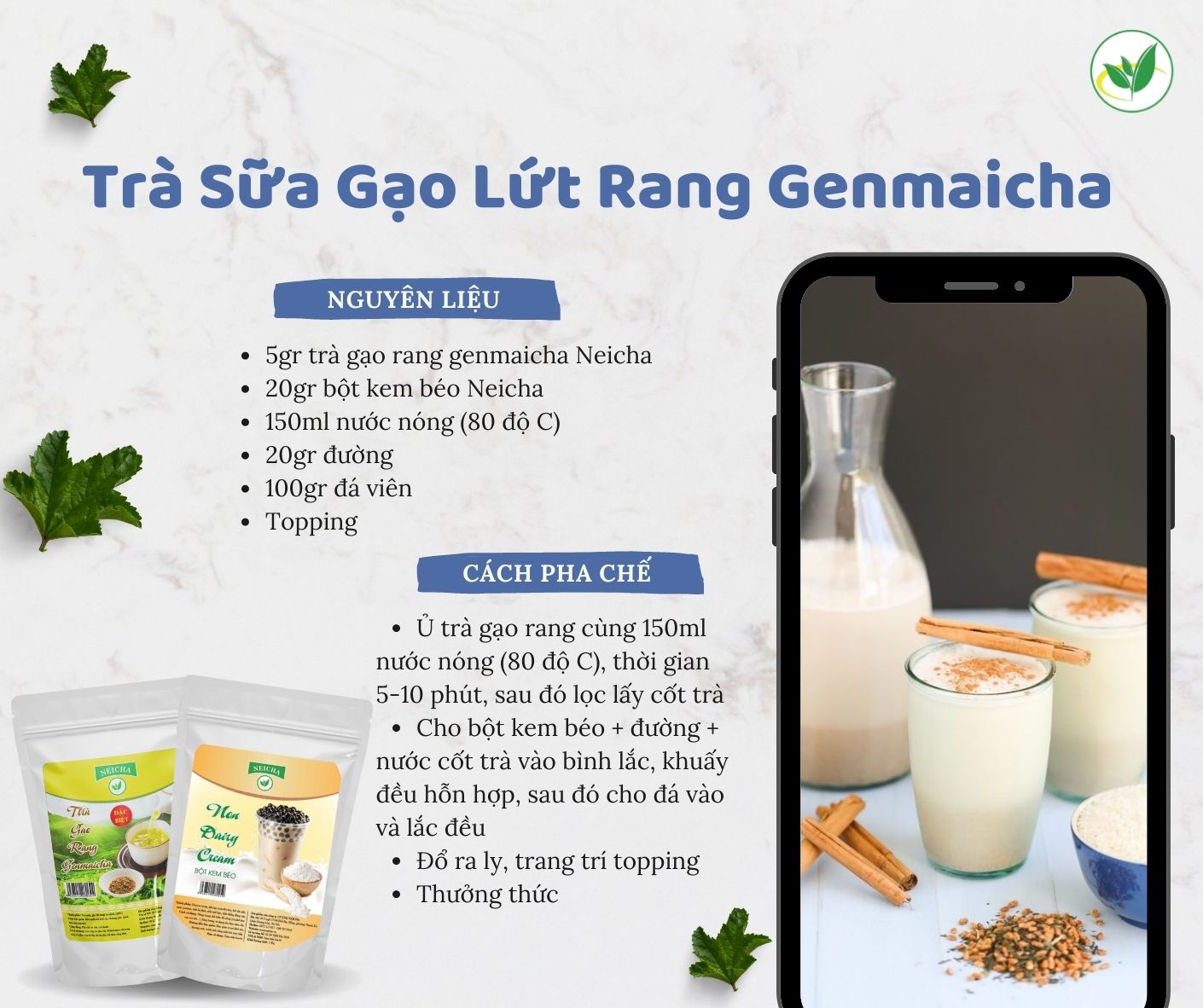Theo xu hướng, ngày càng nhiều người tin dùng các sản phẩm có nguồn gốc từ thiên nhiên, tốt cho sức khoẻ và trà sữa gạo rang genmaicha là một lựa chọn hoàn hảo cho menu của bạn. Tham khảo cách làm bên dưới cùng Neicha và bổ sung vào menu hoặc pha chế ngay những ly trà sữa gạo rang này tại nhà nhé.
