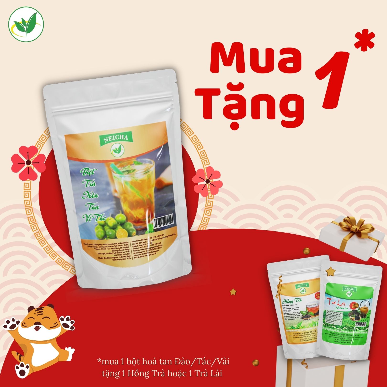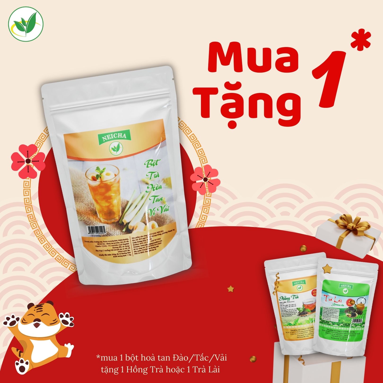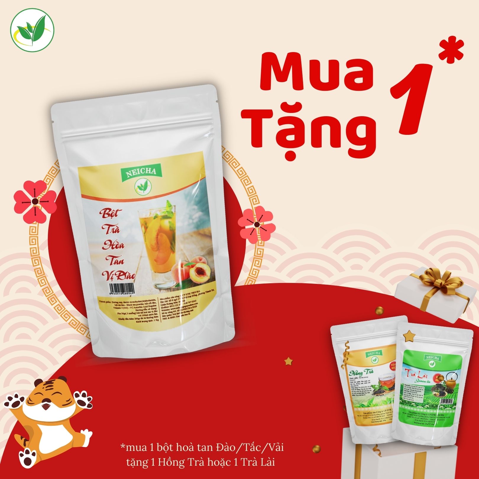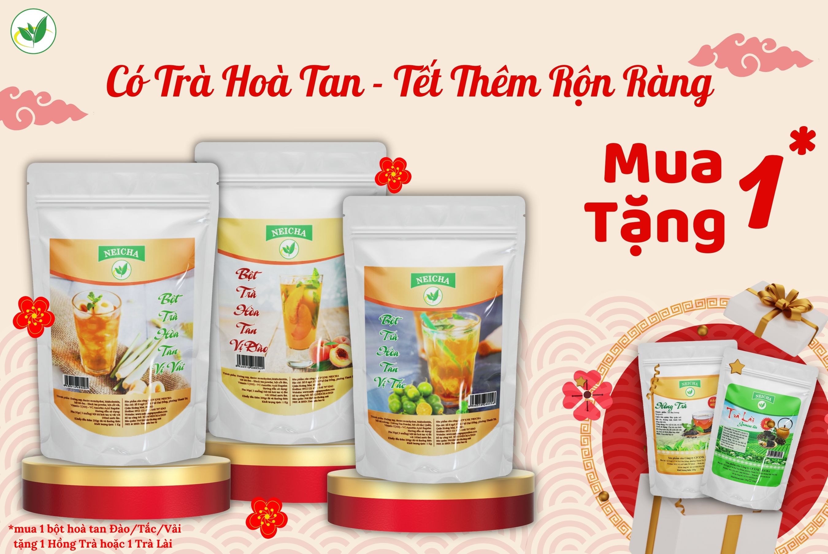 Đang có chương trình MUA 1 TẶNG 1 chào TẾT 2022: khi mua 1 trà hoà tan Đào/Vải/Tắc, bạn sẽ được tặng 1 trà lài hoặc 1 hồng trà (100gr), số lượng có hạn.