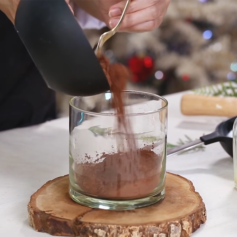 - Cho hỗn hợp sữa cacao bạc hà vừa nấu ra ly