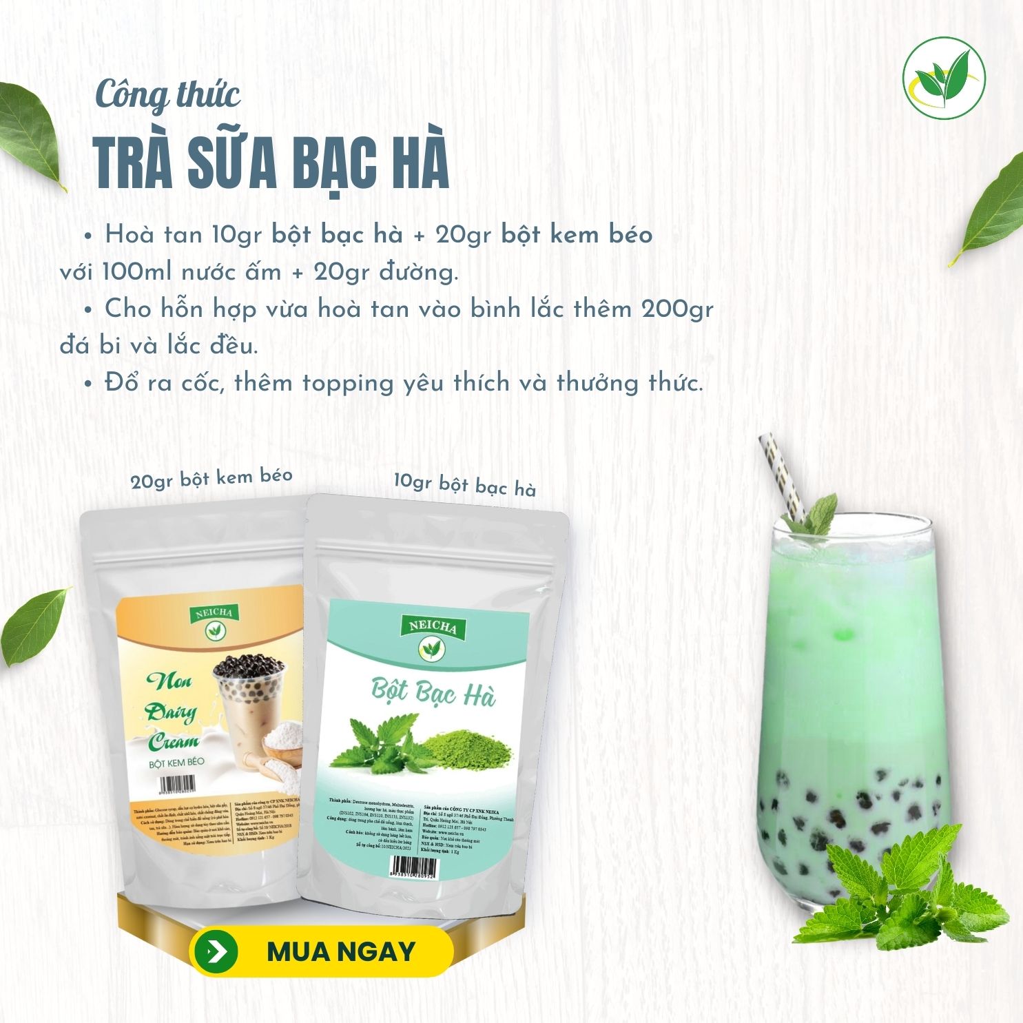 Nếu bạn đang có nhu cầu mua nguyên liệu để pha chế trà sữa bạc hà kem cheese giá tốt mà lại an toàn thì hãy tham khảo Nguyên liệu pha chế Neicha ngay nhé.