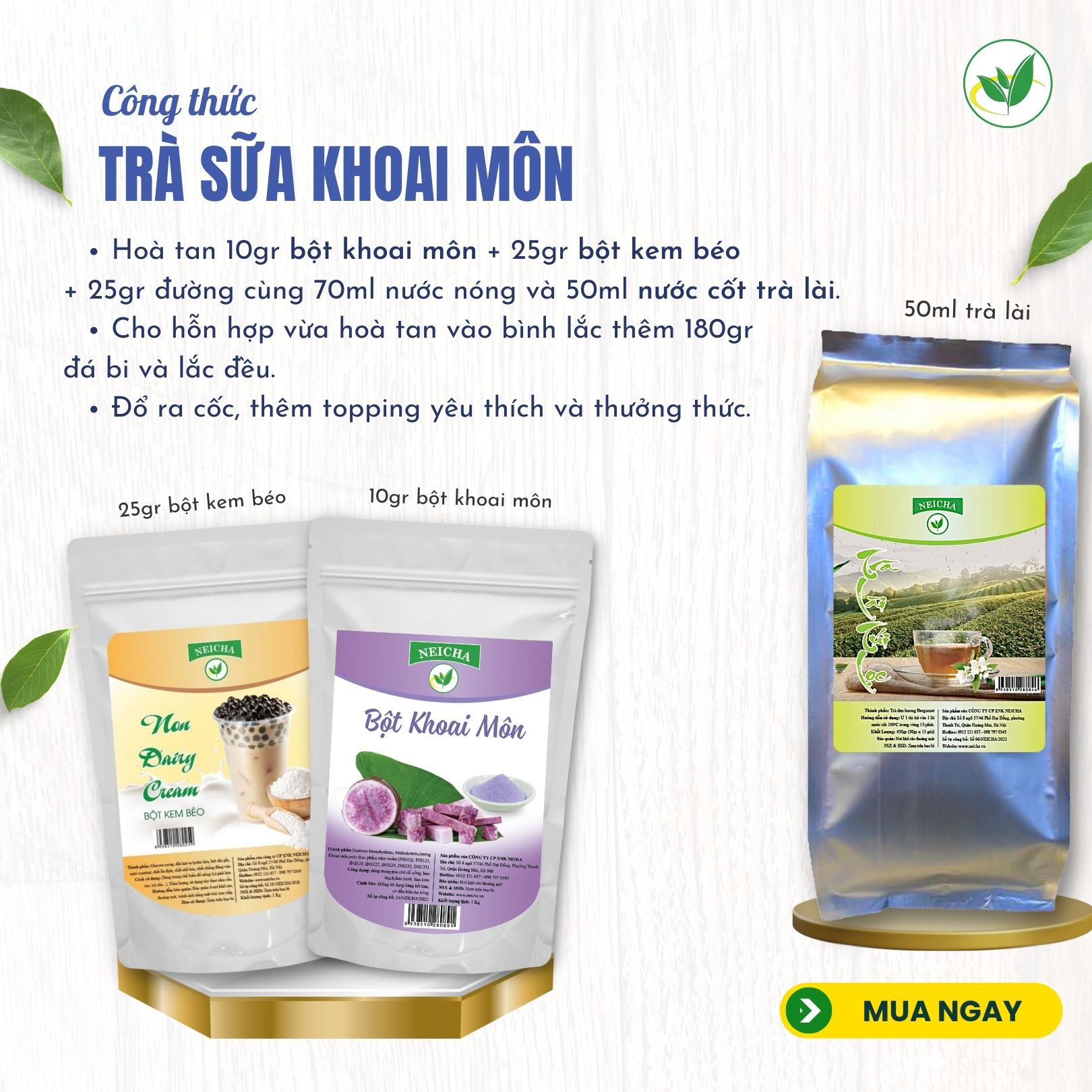 Mách bạn công thức đơn giản làm trà sữa khoai môn truyền thống vị ngon mê ly, bộ 3 nguyên liệu Neicha hỗ trợ bạn: bột khoai môn, bột kem béo, trà lài cùng đường và nước nóng. Công thức có sẵn ngay bên dưới, tham khảo ngay.