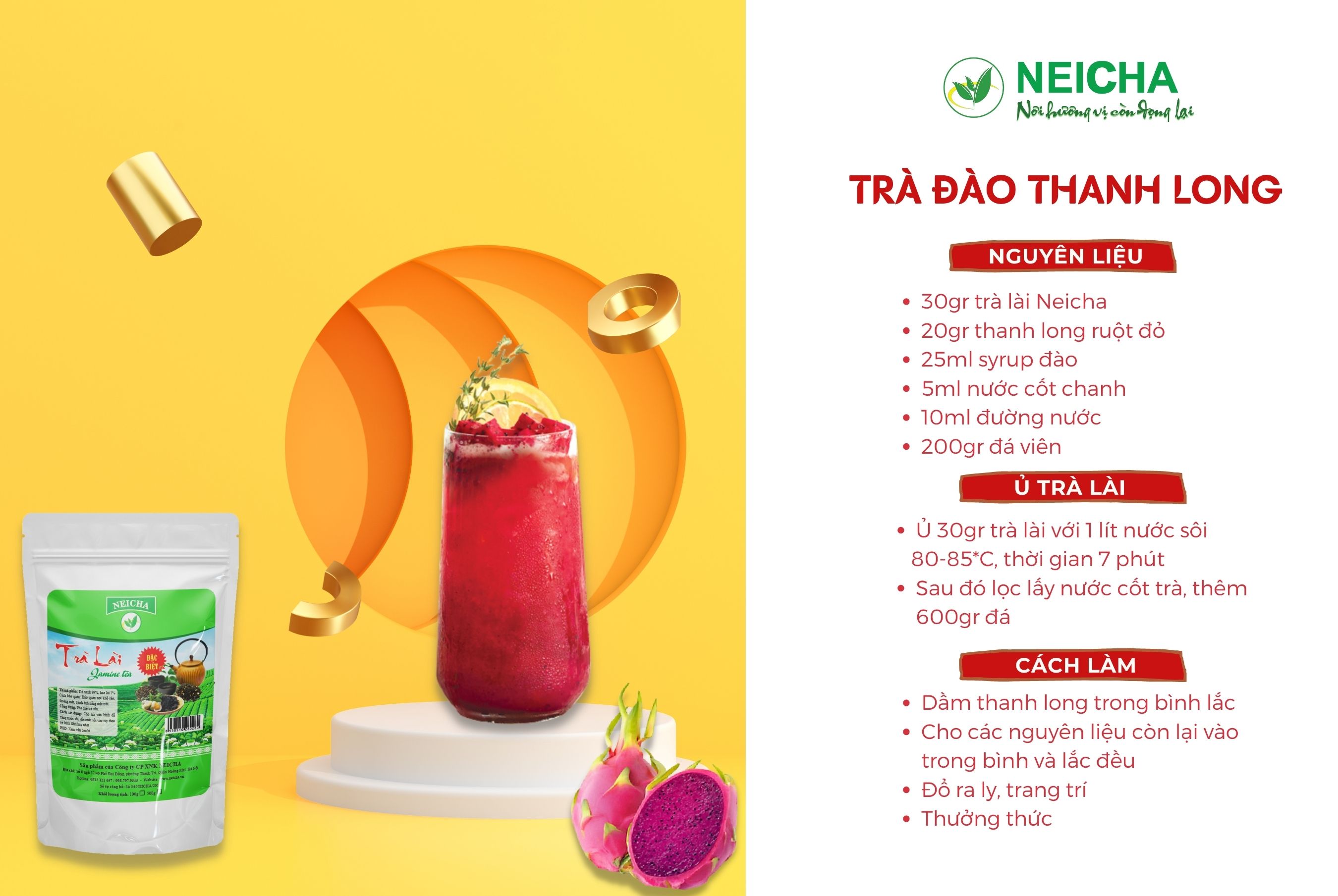 Sự kết hợp giữa cốt trà lài thơm cùng sự tươi mát của thanh long ruột đỏ, thêm syrup đào cùng một số nguyên liệu dễ kiếm là bạn đã có thể tự tay pha chế nên những cốc trà đào thanh long ngay tại nhà hoặc nếu kinh doanh đồ uống thì đây sẽ là một “làn gió mới” cho menu của cửa hàng bạn đó. Neicha có đính kèm công thức trà đào thanh long ngay bên dưới, bắt tay vào làm thôi nào.