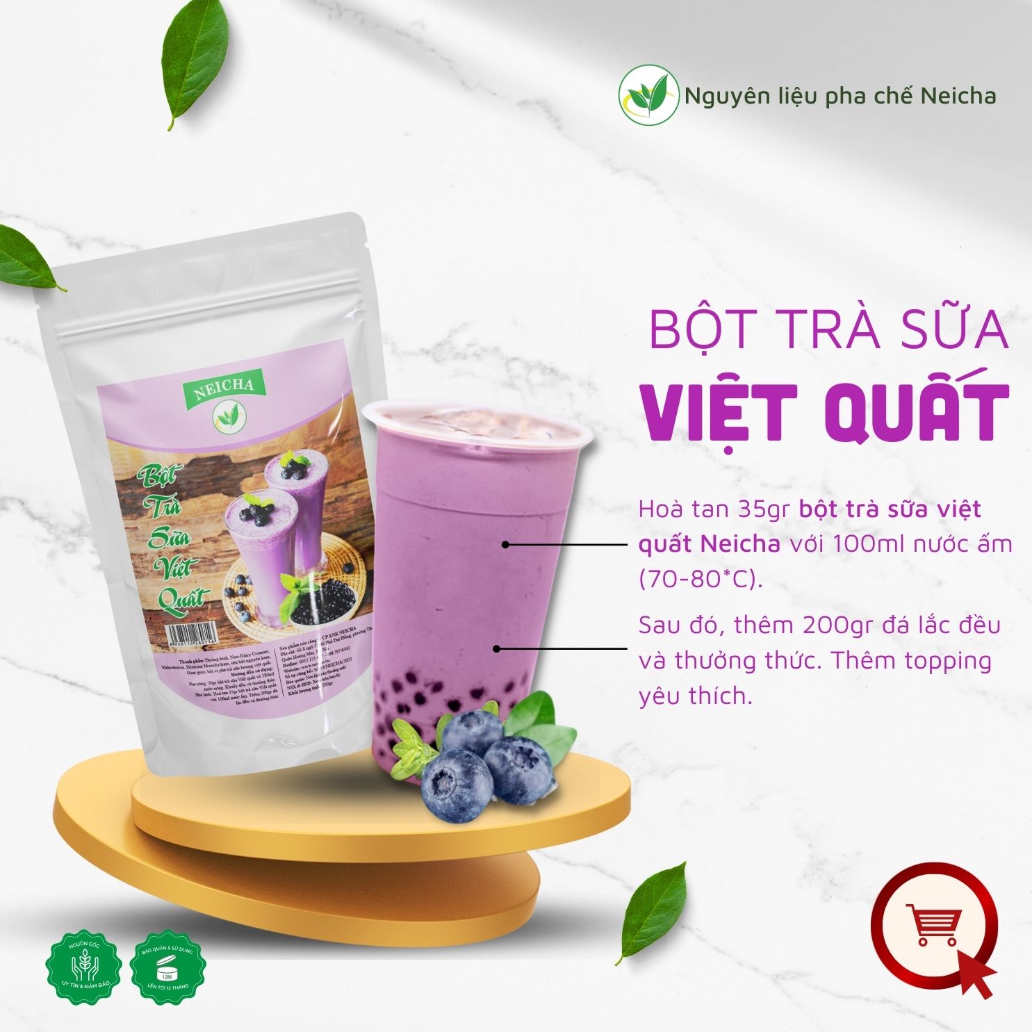 Neicha có tới 11 vị bột trà sữa “hot trend”: matcha, socola, dâu, việt quất, khoai môn, hồng trà sữa, hồng trà đào, than tre, đường đen, rang, bạc hà.