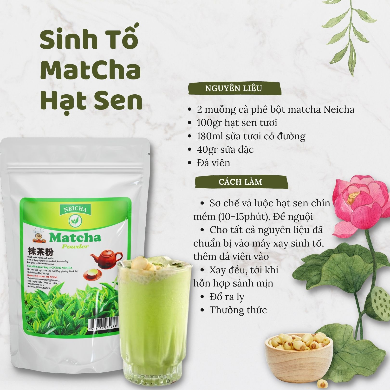 Một thức uống dinh dưỡng từ matcha và hạt sen mà bạn không thể bỏ qua đó chính là sinh tố hạt sen matcha. Nếu đã quá quen với các ly trà sữa matcha thì sao không thử “đổi gió” bằng một ly sinh tố hạt sen matcha nhỉ? Cùng Neicha tham khảo cách làm bên dưới nhé.