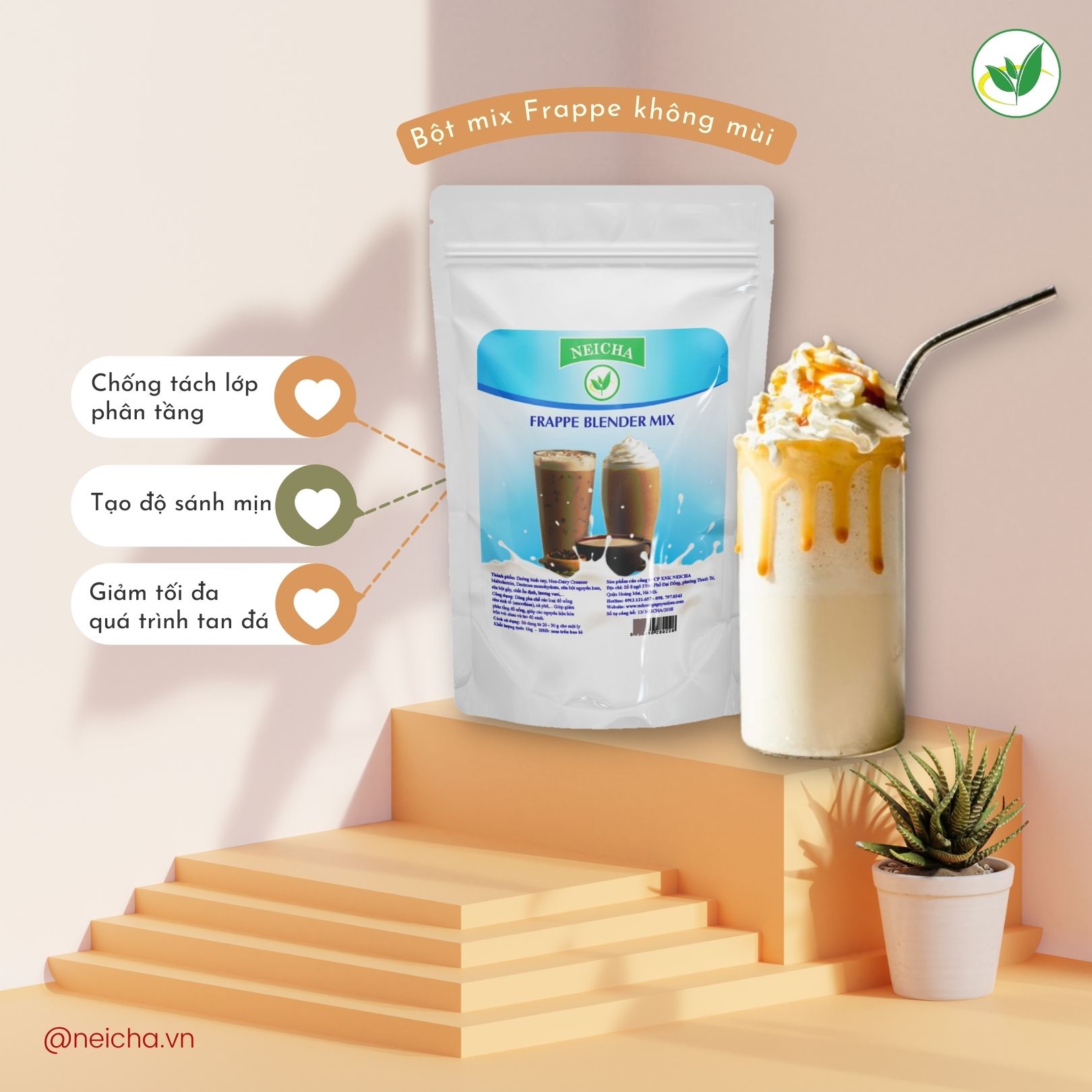 Bạn có từng thắc mắc: tại sao những cốc đồ uống đá xay hay take-away rất ít khi bị tan đá nhanh không? Một nguyên liệu “bí ẩn” sẽ được Neicha bật mí ngay: bột mix, không những giúp đồ uống hạn chế tối đa thời gian tan đá mà còn tạo nên độ sánh mịn tuyệt vời. Neicha có 2 loại bột mix (bột frappe) siêu cháy hàng, rất được các chủ kinh doanh đồ uống ưa chuộng và là một trong những sản phẩm best seller của công ty chúng tôi, tham khảo ngay bên dưới nhé.