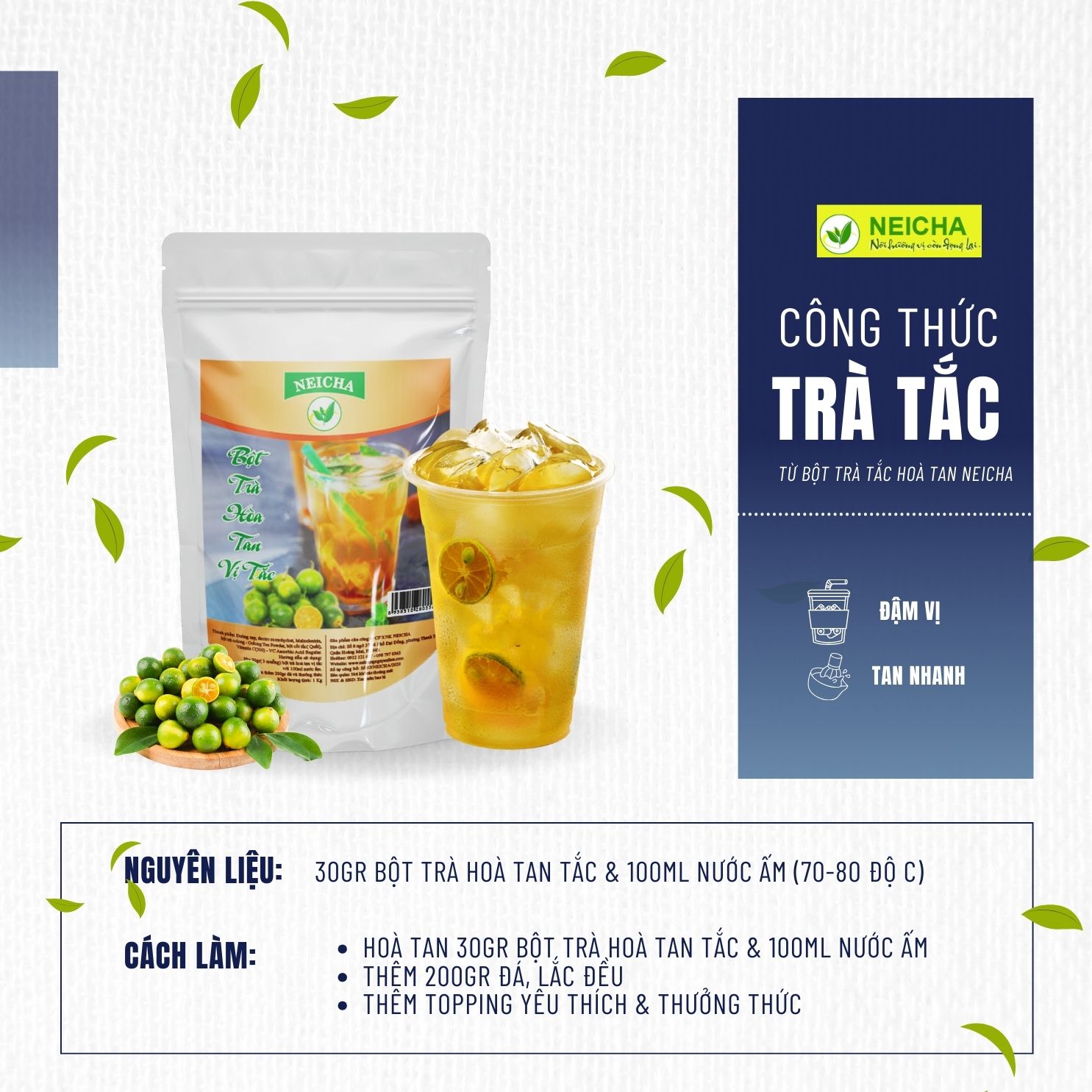 Với cách làm trà tắc đơn giản, bạn có thể dùng pha chế ngay tại nhà hoặc dùng làm công thức bán buôn đều được. Bột trà tắc Neicha đảm bảo không vón cục và tan nhanh, thưởng thức những cốc trà tắc thơm ngon không còn là vấn đề thời gian. Tham khảo công thức pha trà tắc nhanh nhất từ bột trà tắc hoà tan tiện lợi Neicha ngay bên dưới.