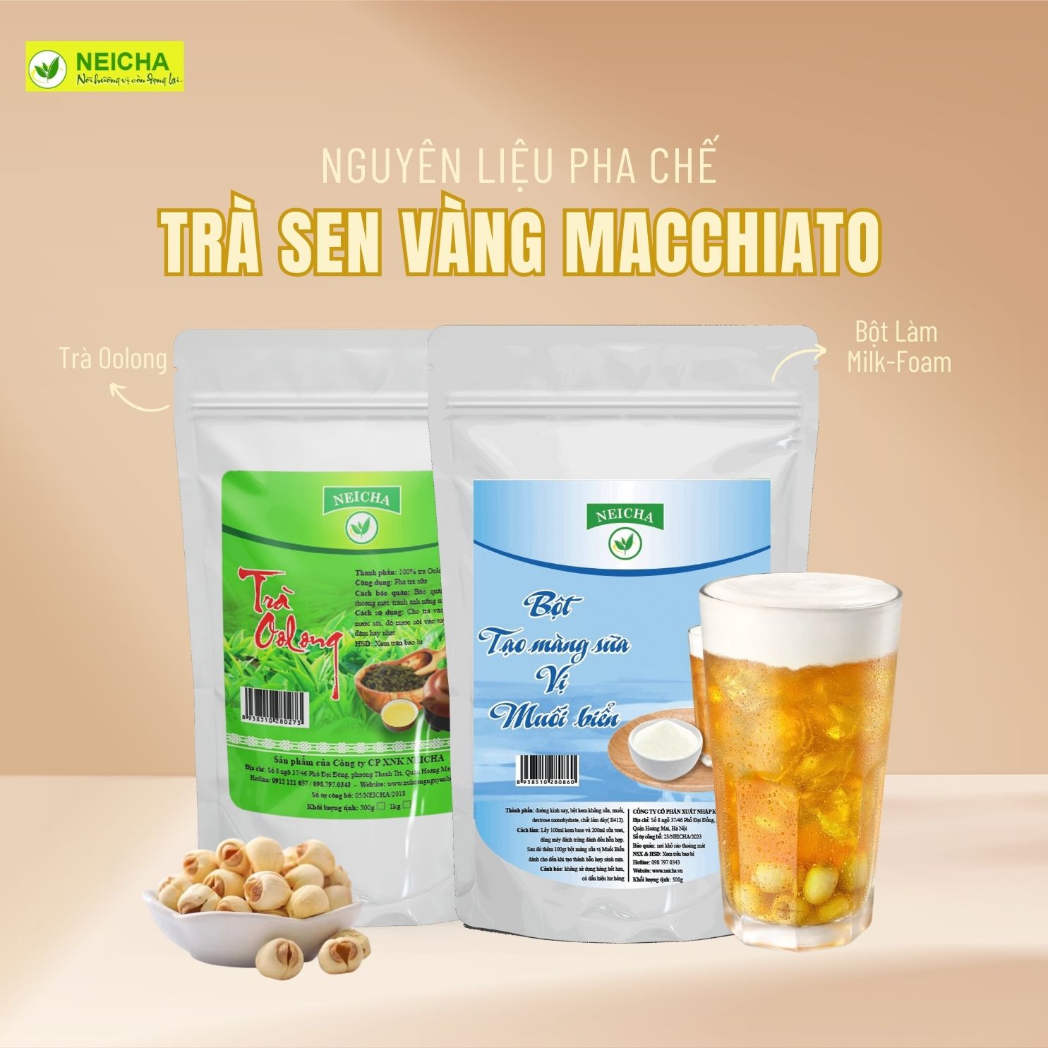 Nếu bạn đang có nhu cầu mua nguyên liệu pha chế trà sen vàng macchiato giá tốt mà lại an toàn thì hãy tham khảo Nguyên liệu pha chế Neicha ngay nhé.