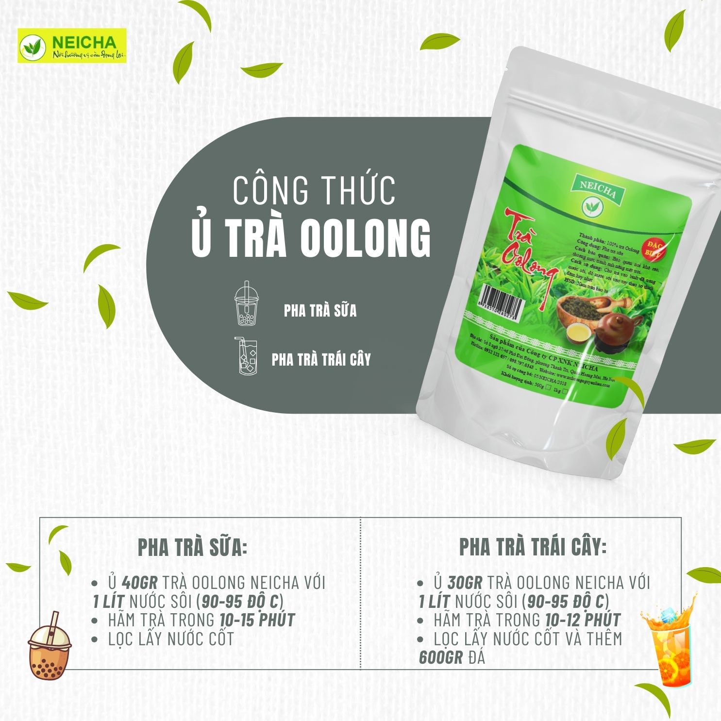 Đến với Neicha, quý khách sẽ có nhiều hơn là một sự lựa chọn. Ngoài các loại bột, trà để pha chế chất lượng, Neicha còn sản xuất – gia công và phân phối các dòng nguyên liệu pha chế đa dạng và phù hợp với nhu cầu thị trường đồ uống, tin chắc Nguyên liệu pha chế Neicha sẽ không làm quý khách thất vọng. Xin vui lòng liên hệ qua Hotline: 098 797 0343 hoặc truy cập fanpage: https://www.facebook.com/neicha.vn. Liên hệ với Neicha ngay hôm nay để được tư vấn và nhận những ưu đãi cực kì hot nhé.