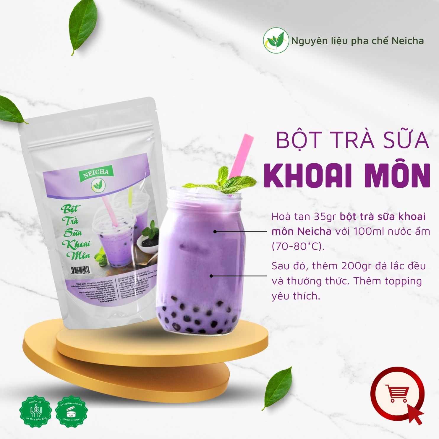 Giải pháp pha chế những cốc trà sữa khoai môn thơm ngon ngay tại nhà siêu nhanh với bột trà sữa khoai môn Neicha, không gì là không thể. Chưa tới 15 phút là bạn đã có thể thưởng thức cốc trà sữa màu tím xinh xẻo và thơm lừng, uống kèm topping yêu thích để gấp đôi vị ngon. Bắt tay vào pha chế ngay.